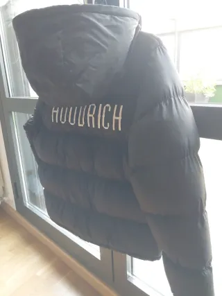 Abrigo acolchado de color negro, ideal para el frío. - Diseño con capucha. - Cierre de cremallera. - Bolsillos frontales. como nuevo en perfecto estado. Pluma de cisne. 🦢