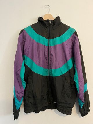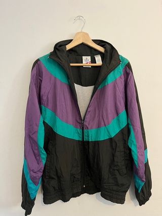 Cortavientos de estilo vintage con un diseño llamativo. - Diseño de bloques de color curvos. - Cremallera frontal. - Cuello alto.