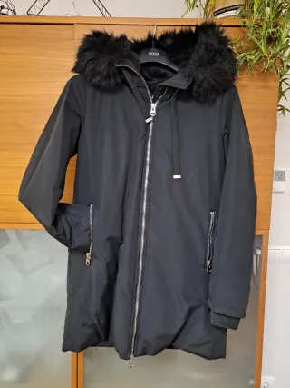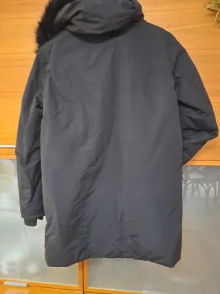 Chaqueta estilo parka con capucha y detalles de pelo sintético. - Cierre de cremallera. - Bolsillos frontales con solapa. - Puños ajustables. La compramos por error y no sé devolvio