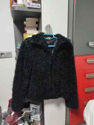 Abrigo negro con capucha de pelo sintético, ideal para el frío. Se encuentra en perfecto estado. - Cierre con cremallera y botones. - Bolsillos laterales. - Forro interior suave.