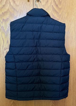 Chaleco negro con un diseño moderno y cálido. - Acolchado para mayor confort. - Detalle de borreguito en el bajo. - Cierre de cremallera frontal. - Bolsillos laterales con botón.