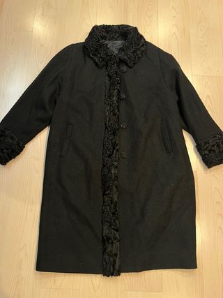 Elegante abrigo de astracán. - Diseño clásico y atemporal. - Textura única y llamativa. - Cierre con botones.