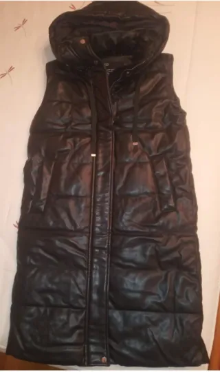Chaleco largo con efecto piel, ideal para añadir un toque moderno a tu estilo. - Diseño acolchado. - Capucha integrada. - Cierre cremallera - Cordones ajustables en la capucha.