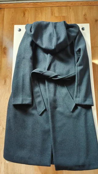 Abrigo de Zara con cinturón y capucha. Color negro. Muy buen estado, usado 2 veces. Talla S, 36, da bastante talla. - Diseño elegante y moderno. - Tejido suave y confortable. - Ideal para cualquier ocasión.