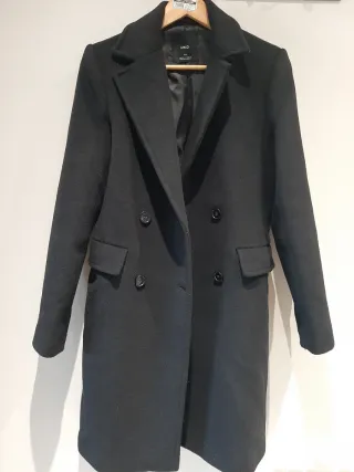 Elegante abrigo de Mango en color negro. Ideal para añadir un toque sofisticado a tu vestuario. - Diseño de doble botonadura. - Cuello de solapa clásico. - Bolsillos frontales con solapa.