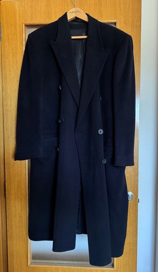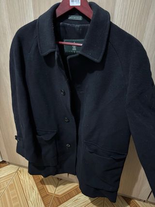 Elegancia británica clásica! Vendo este abrigo de la prestigiosa marca Austin Reed. Es una prenda robusta, pesada y muy cálida, ideal para el invierno o para un look formal/business. Estado: Excelente estado, muy bien cuidado. Color: Negro intenso. Talla: 46 (equivale a una L amplia o XL, recomiendo revisar medidas). Detalles de diseño: Cierre frontal con botones ocultos para un look más limpio. Cuello clásico estructurado. Detalle de tira con botón en los puños (estilo militar/clásico). Bolsillos laterales amplios con tapeta. Forro interior completo en perfecto estado. Tejido: Lana de alta calidad, muy suave al tacto