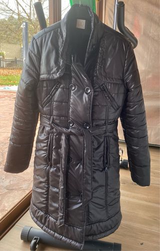 Chaqueta acolchada negra. Se encuentra en buen estado. Puesta casi nada - Diseño ligero y cómodo. - Cierre de cremallera. - Bolsillos laterales. Talla 34. Abriga bastante. URGE VENDER POR FALTA DE ESPACIO REBAJADISIMO!!!