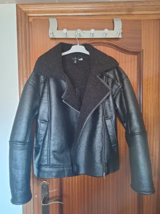 Cazadora estilo biker de H&M con doble faz totalmente NUEVA en tejido revestido con solapas de muesca en borreguito suave. En la web de H&M se vende a 69€, yo la vendo por más de 20€ menos, totalmente nueva tal cual me la trajeron. Es un modelo de corte holgado con hombros caídos, cremallera diagonal y bolsillos delanteros. El forro es de borreguito. Compré dos iguales en tallas distintas para probarlas y se me pasó el plazo para devolver la que no me venía bien. En la foto muestro la que me queda bien y la nueva, que vendo.