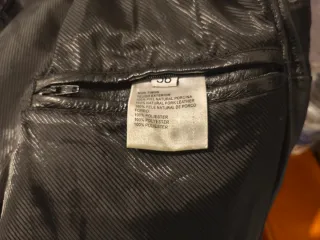 Chaqueta estilo motero con detalles de tachuelas. - Cierre de cremallera. - Dos bolsillos delanteros con solapa. - Hombreras con botón. - Parches decorativos. -Pone talla XL pero creo que es como una L