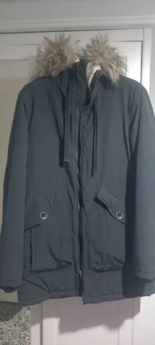 Abrigo elegante de Zara, perfecto para el frío. - Diseño con capucha. - Detalle de pelo en la capucha. - Cierre de cremallera. - Bolsillos frontales.