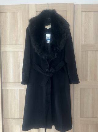 Abrigo negro mujer talla XXL cuello de pelito.