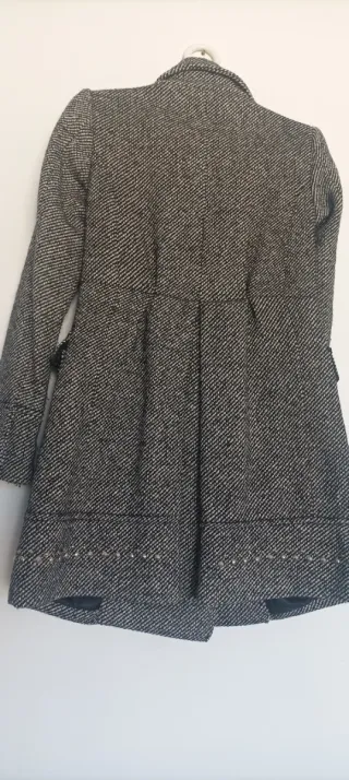 Abrigo negro N by Naf Naf mujer – lana – talla 44 Abrigo de mujer de la marca N by Naf Naf, elegante y muy fácil de combinar. Es un abrigo negro clásico ideal para otoño e invierno. Destaca por su cuello con pelo, muy suave y elegante, y por su forro interior con estampado de lunares en azul y dorado, que le da un toque original. Detalles: • Marca: N by Naf Naf • Talla: 44 • Material: lana • Color: negro • Cuello con pelo • Cierre frontal con botones dorados con dibujo de perro • Bolsillos delanteros • Forro interior estampado muy bonito • Corte elegante y favorecedor 📌 Estado: Muy buen estado. Un abrigo versátil y ele