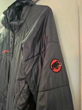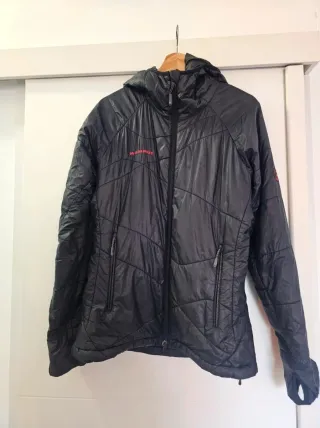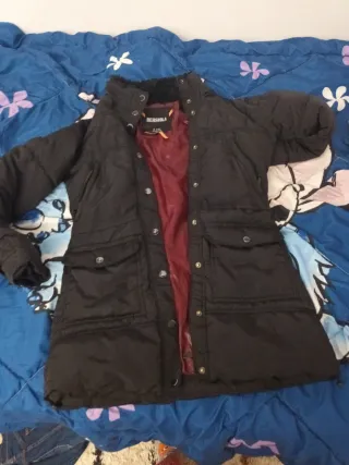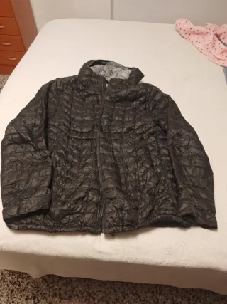 Abrigo acolchado con capucha, liviano Usado mucha sveces, puede ser que tiene agujeros o algo. No lo he visto pero aviso - Color negro. - Cierre de cremallera frontal. - Bolsillos laterales con cremallera. - Puños con abertura para pulgar.