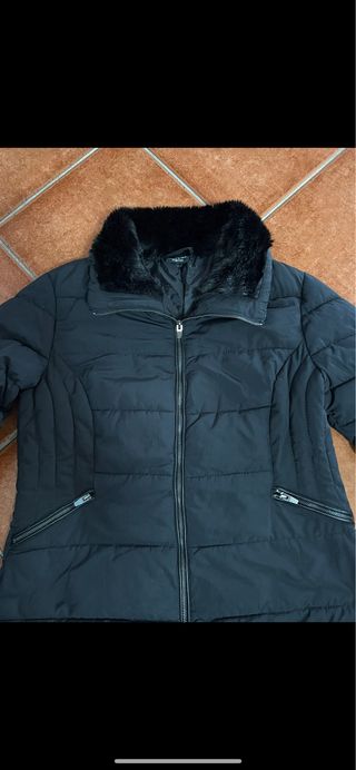 Abrigo negro mujer talla XXL cuello de pelito. - Abrigo color negro. - cierre con cremallera. - Cuello con pelitos. - Bastante calentito. - Talla XXL / 44.