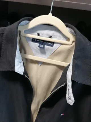 Chaqueta de la marca Tommy Hilfiger. - Diseño acolchado en los hombros. - Forro interior con estampado de logo. - Cierre de cremallera frontal. - Bolsillos laterales con botón.