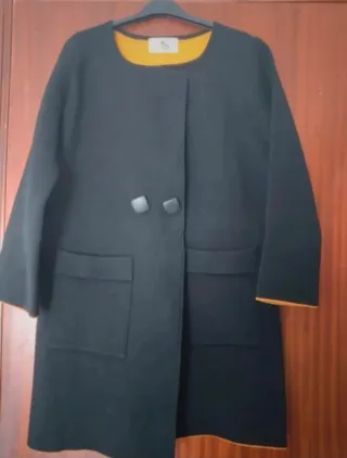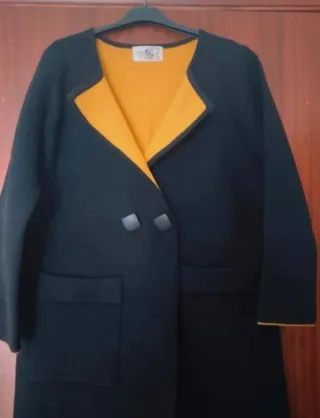Abrigo negro con interior mostaza usado solo dos veces y que está en perfecto estado. Da bastante talla y puede servir para una L/XL