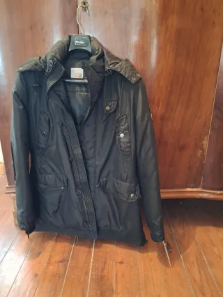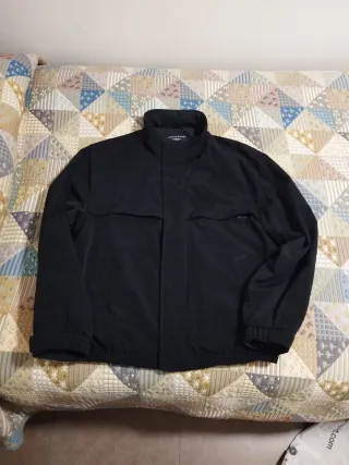 Abrigo de la marca Jack & Jones en tono negro/gris. Estado como nuevo, usado muy pocas ocasiones por talla no adecuada para mi. Presenta un diseño moderno con cuello alto y cierre de cremallera. Para invierno, con forro interior en la parte superior de la prenda. - Dos bolsillos superiores con solapa y botón. - Dos bolsillos inferiores. - Puños ajustables con botón. - Detalle de placa en el hombro. - Talla S