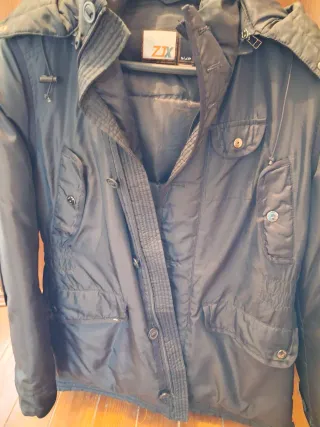 Abrigo de hombre con un diseño moderno y práctico. Usado pero bastante bien conservado - Cierre de 2 cremalleras - Bolsillos frontales con cremallera. - Capucha integrada. Abrigo, cazadora, chaqueta....