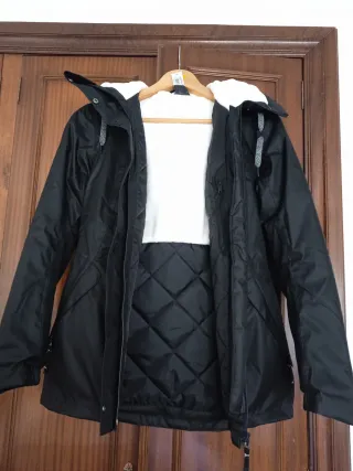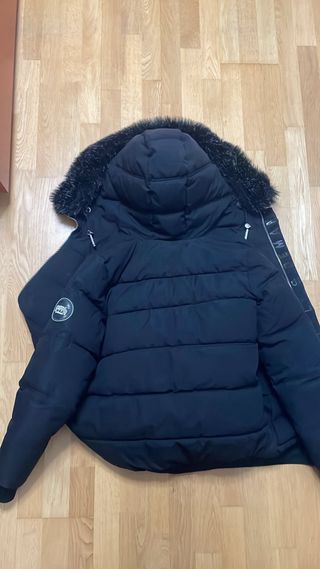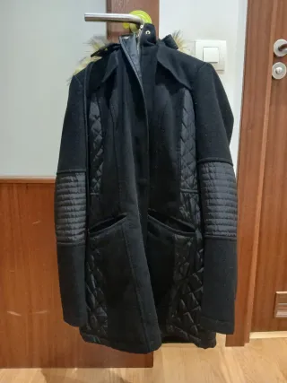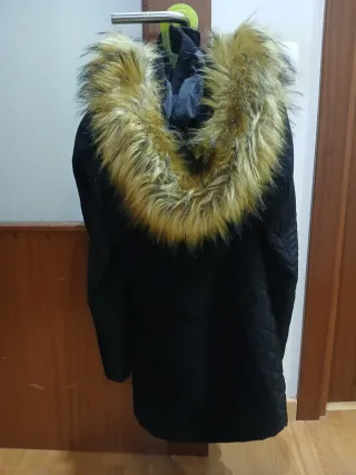 Abrigo negro con capucha nuevo con etiqueta. Me costó 89,95€ - Diseño acolchado. - Capucha con pelo sintético. - Cremallera frontal con detalles de color.