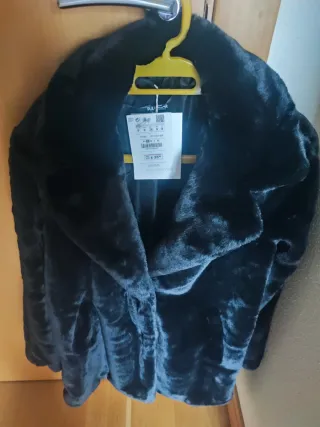 Abrigo pelo Zara negro talla xs