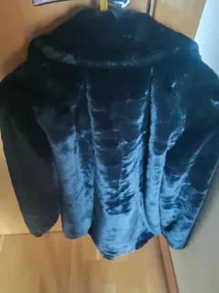 Elegante abrigo de pelo sintético. - Diseño largo y abierto. - Tacto suave y cálido. - Ideal para ocasiones especiales o para dar un toque sofisticado a tu look diario. Es talla xs pero sirve para s también ya que es amplio