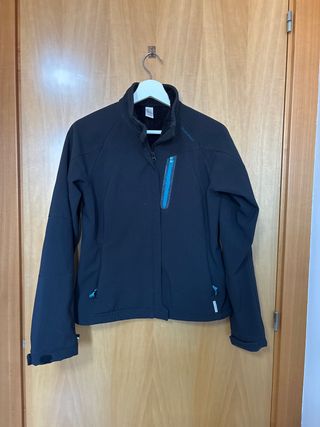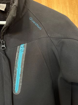 Cortavientos negro de la marca Quechua. - Cierre de cremallera frontal. - Bolsillo con cremallera en el pecho. - Puños ajustables con velcro. muy usado, tiene evidentes signos de desgaste pero aún se puede utilizar