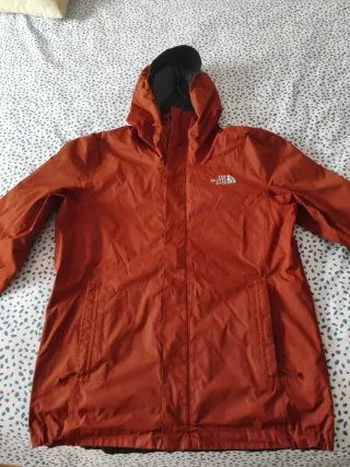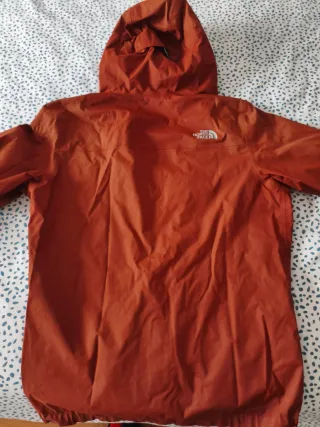 Cortavientos The North Face con capucha. - Color naranja y negro. - Diseño con cremallera frontal. - Dos bolsillos laterales con cremallera. - Único desperfecto en el puño como se puede apreciar en la foto