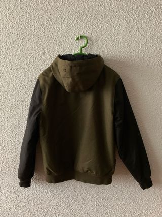 Abrigo de la marca Element con un diseño moderno y funcional. - Mangas de color negro. - Cuerpo principal en tono verde oliva. - Capucha integrada. - Cierre de cremallera frontal. - Talla XS - Nuevo(Nunca se ha usado)