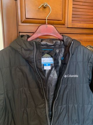 Abrigo acolchado con capucha de la marca Columbia. - Diseño ligero y cálido. - Cierre de cremallera frontal. - Bolsillos laterales con cremallera. - Forro interior plateado reflectante.