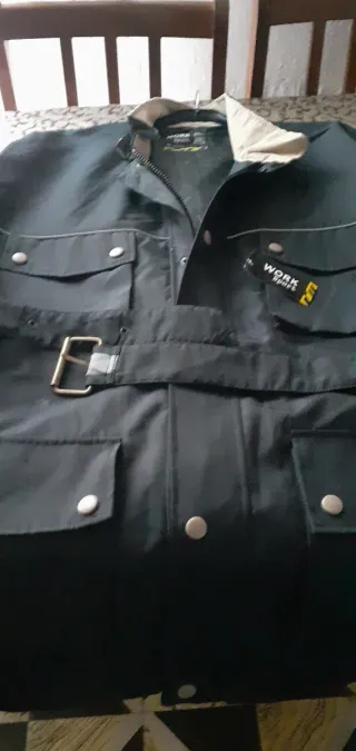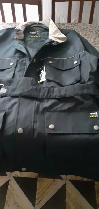 Cazadora WORK SPORT en color negro y talla XXL. Un básico para tu armario. Impermeable - Cierre de cremallera. - Cuello con solapa. - Múltiples bolsillos frontales con botones. - Cinturón ajustable.