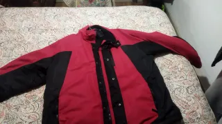 Cazadora de hombre con un diseño moderno y llamativo. - Combinación de colores rojo y negro. - Cierre frontal con botones a presión.