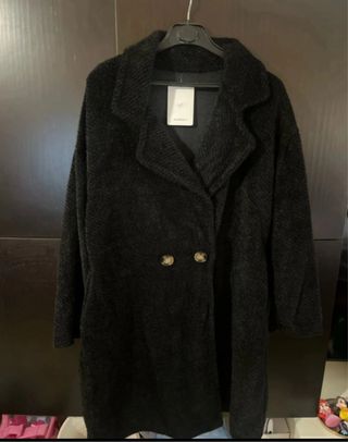 Abrigo elegante de la marca Pimkie en color negro. Ideal para mantenerte abrigada con estilo. - Diseño de doble botonadura. - Cuello con solapas y detalle de canalé. - Cinturón ajustable a la cintura. - Puños de canalé.