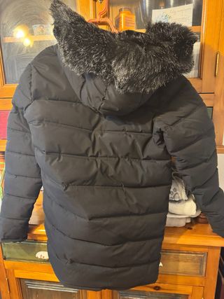 Elegante plumífero de la marca HENRY ARROWAY en color negro. Diseñado para ofrecer calidez y estilo. - Detalle de pelo en la capucha. - Puños con pelo. - Acabado brillante. Comprado en el Corte Inglés PVP 750
