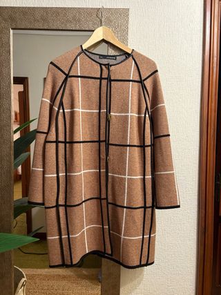Abrigo punto Sfera cuadros marrón, talla S grande