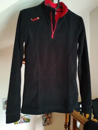 Forro polar Izas de color negro con cuello alto y cremallera. - Cremallera frontal. - Cuello alto con forro rojo. - Logo de Izas en el pecho.