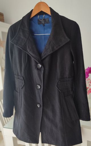 Abrigo elegante de la marca Cortefiel. - Color negro. - Diseño clásico con botones. - Bolsillos frontales.