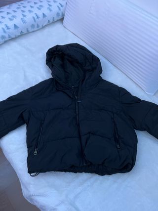 Plumífero estilo bomber de Zara. - Diseño acolchado. - Cuello alto. - Cierre de cremallera. - Cordones ajustables en el bajo.
