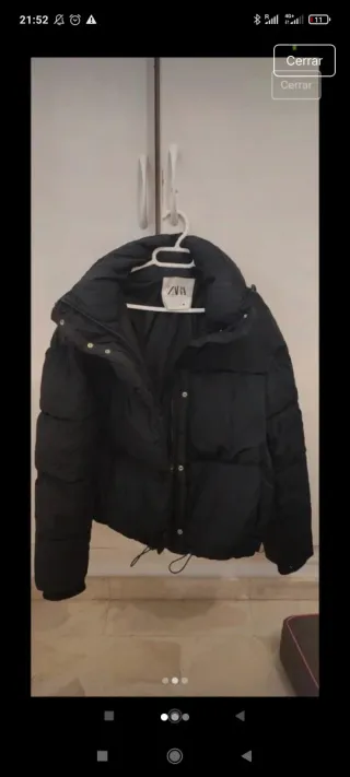 Elegante abrigo negro de Zara para mujer. Un básico versátil para cualquier guardarropa. - Diseño moderno con detalles. - Cierre frontal con cremallera. - Cuello alto.