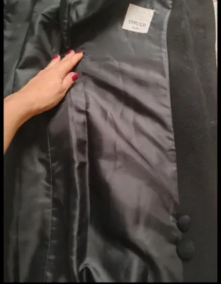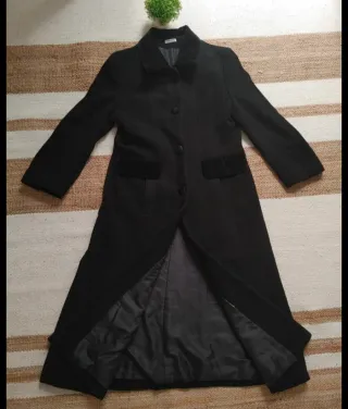 Abrigo elegante de color negro, ideal para cualquier ocasión - Diseño clásico con cuello - Cierre de botones al pecho y detalle a la espalda. - Bolsillos laterales - Es un abrigo precioso para vestir porque la manga es tipo francesa y si llevas un vestido de manga abullonada en la muñeca, queda fantástico. - La mayoría de la ropa en venta es por cambio de talla. - Dispones de más artículos en mi escaparate solidario. Todo lo recaudado va destinado a la gestión de Colonia Cala. - Referencia 0901