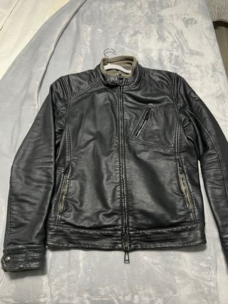 Chaqueta de cuero sintético estilo motero. - Cierre de cremallera frontal. - Bolsillos con cremallera. - Cuello alto. Como nueva en perfecto estado limpia y sin marcas de uso.
