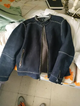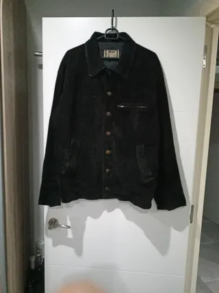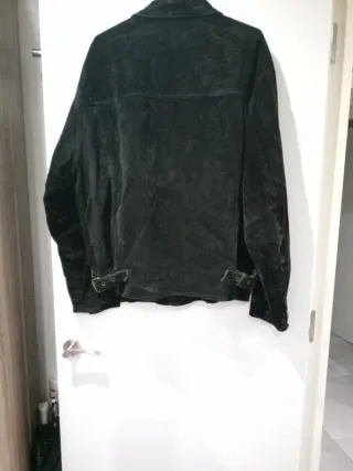 cazadora de piel de ante de cerdo de color negro tipo serraje, poco usada. Talla M/L, 61cm pecho, 67cm largo