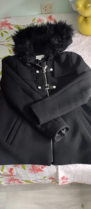 Abrigo negro en buen estado .