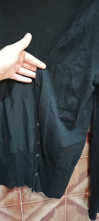 Chaqueta de punto, color negro, con botones en los puños.