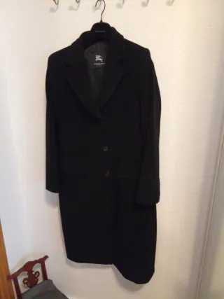 Elegante abrigo largo de Burberry en color negro. Un clásico atemporal para cualquier guardarropa. No sé realmente la talla, será entre una - Diseño de solapa clásica. - Cierre de botones. - Bolsillos frontales.