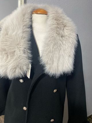 Elegante abrigo negro con un llamativo cuello de pelo sintético en tono beige. - Cierre de botones. - Detalle de botones joya. - Puños con detalle de botón. - Cuello de pelo extraíble. talla 46-50