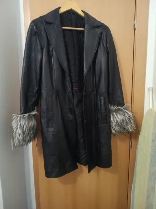 Elegante abrigo largo de piel con un diseño único.Es muy bonita,la vendo porque se me ha quedado estrecha,es muy cómoda y elegante. - Material exterior de piel. - Detalle de puños con pelo sintético. - Forro interior acolchado.
