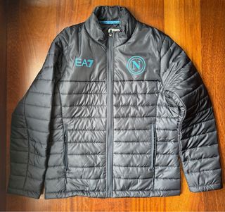 Chaqueta acolchada de la marca EA7, con detalles en azul. - Diseño con cremallera frontal. - Bolsillos laterales. - Logo de EA7 en el pecho. - Escudo de Napoli en el pecho. Nueva sin etiquette. 100% original EA7 Armani Napoli emporio ea7