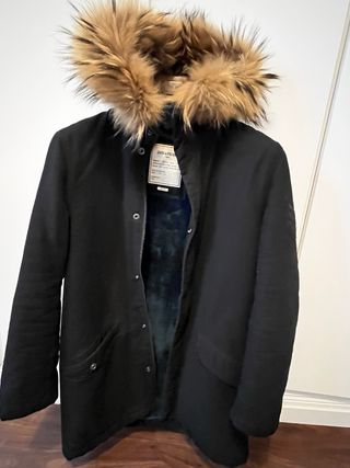 Chaqueta de invierno con capucha de pelo sintético. - Cierre de cremallera. - Dos bolsillos delanteros con solapa. - tres bolsillos delanteros con cremallera. Buen estado, poco uso. Comprado enero de 2024 por 130€)