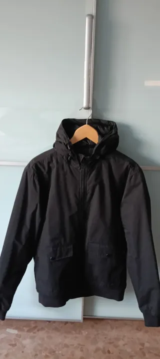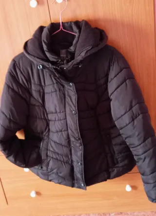 Anorak negro de Primark con capucha, super calentito para frioleras. - Cierre de botones y cremallera. - Bolsillos laterales con cremallera. - Diseño acolchado. - Capucha Talla L