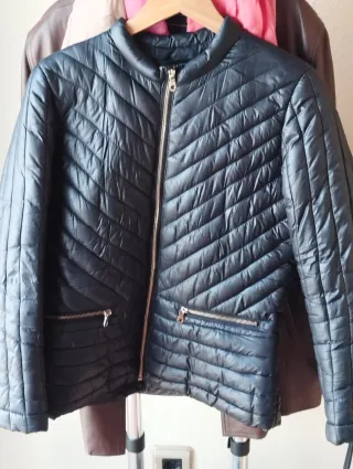Chaqueta acolchada con diseño de líneas diagonales. Cierre de cremallera frontal. Dos bolsillos laterales con cremallera. Entrego en mano en Lidl de camino Moncada número 83 de Valencia o envío si quieres.